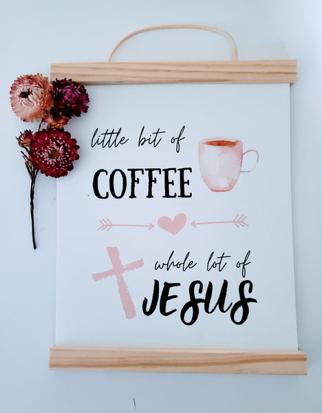 Inspirational Coffee & Jesus Wall Art with Frame - 8x10